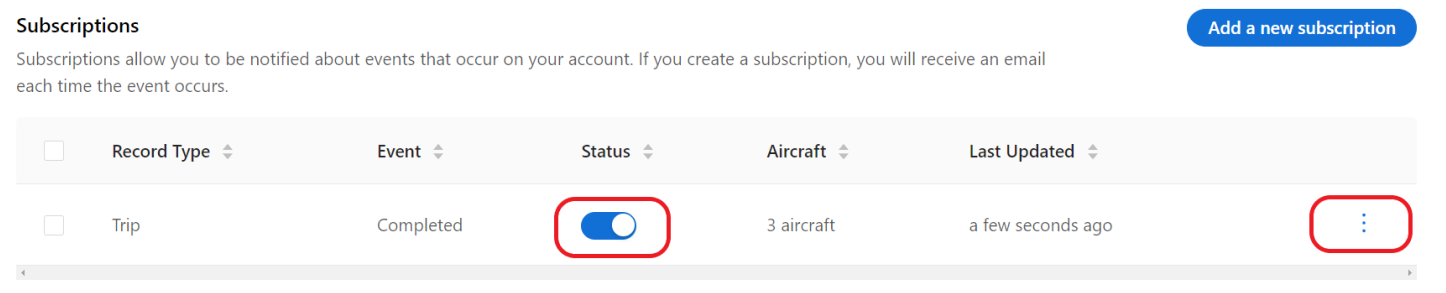 Subscription notifications can be set up via the Web Dashboard. Subscription enable users or teams to be notified when certain actions have been completed within the Tech Log.
