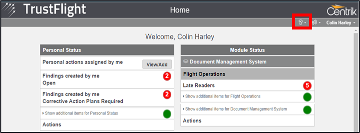 Learn Centrik – if clicked on the user is redirected to a learning tool within Centrik.