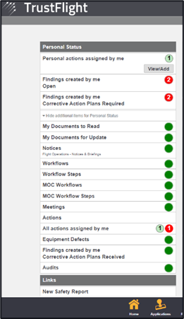 My Logbook - This will show red when there are no details regarding a flight within the Tasking Module. Clicking on view will show you your logbook and hours flown.