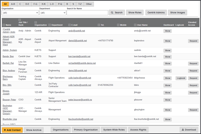Download – the ability to download a list of your Centrik contacts and their Roles