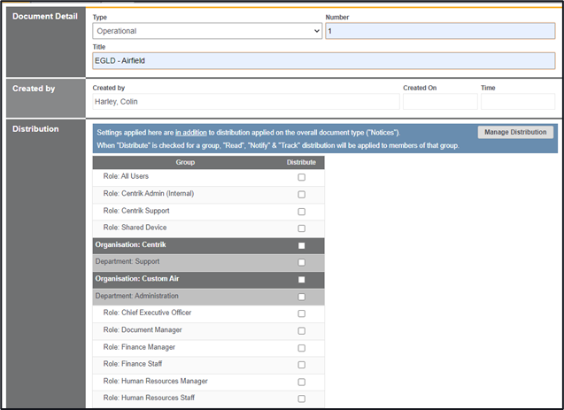 3. If you have selected ‘granular’ for your document distribution you will also see a list of roles displayed. This means that you can distribute individual documents within a folder instead of the entire folder.