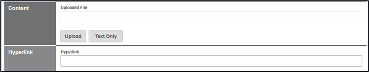 Documents and text only are added in via the contents area and hyperlinks via the hyperlink area, you are only able to select one type from text, upload or hyperlink.