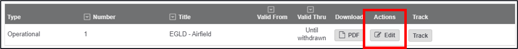 1. From the documents overview page click on the ‘Edit’ button for that document