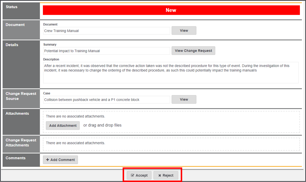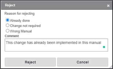 Document Amendment, and decide to ‘accept’ or ‘reject’ the change request depending on the