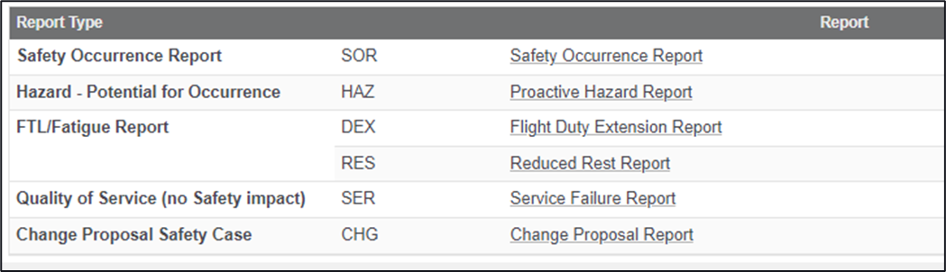 Depending on the report type it may also contain a fatigue area and an MOR (Mandatory Occurrence Report) flag area.