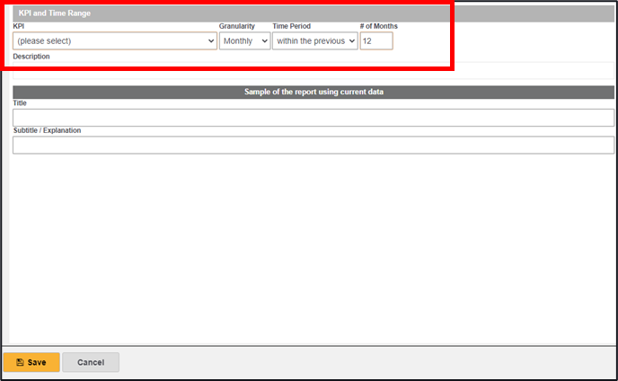 Once a KPIs selected alongside the granularity, the time period and # of months you are provided with further options.