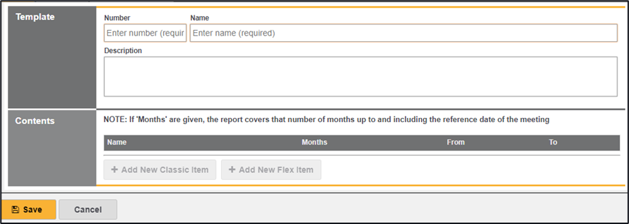 ‘+ Add New Classic Item’ – This allows you to add in a report that contains predefined values within it, these are fixed lists within the classic style.