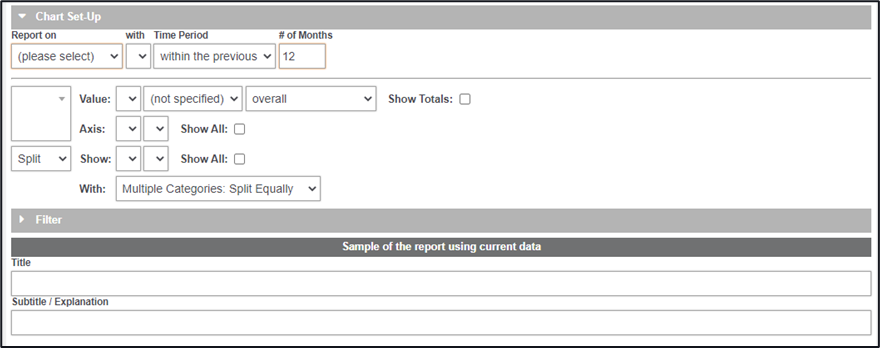 With - Selecting a ‘Report on’ value will enable the ‘with’ box, this will display the useable selections available in the dropdown box