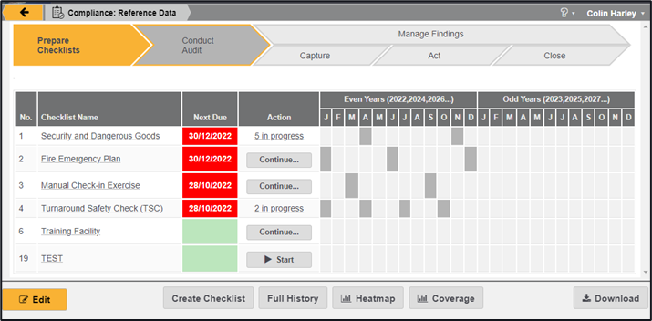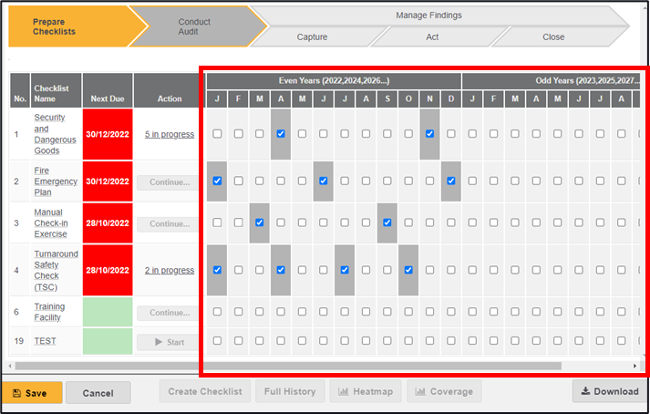 This creates your schedule. It is possible to create a schedule within each individual checklist if required.