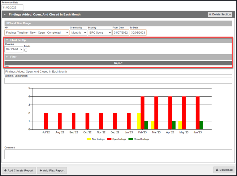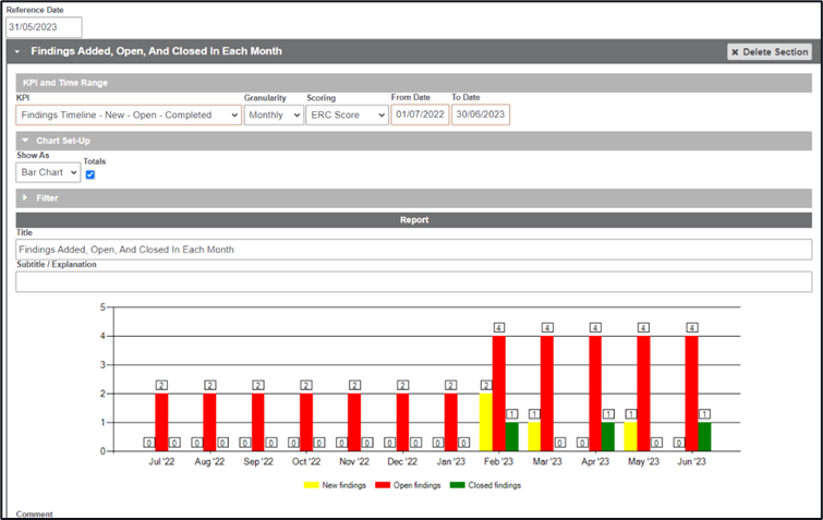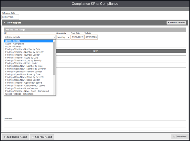 When values have been entered you are able to pull reports on these by using the ‘References’ selection in the KPI breakdown.