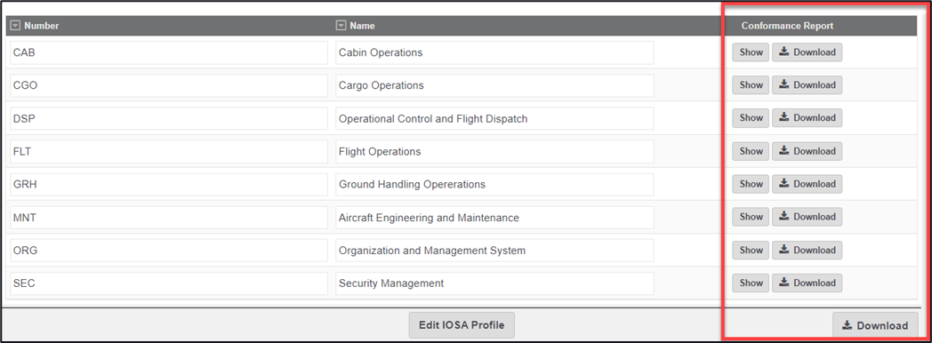 IOSA Reporting – The ability to view and download IOSA reporting areas and where they have been used across audits