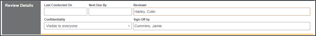 7. Selected the assessment reoccurrence, if ‘One-off’ is selected within the review details area an Expires on box is available. If ‘Repeated’ is selected a Next Due By date will replace this