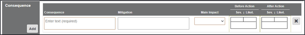 5. Select a Main impact area from the ‘Main impact’ dropdown area (these can be configured per organisation and allow an organisation to state what area of the business this consequence could impact