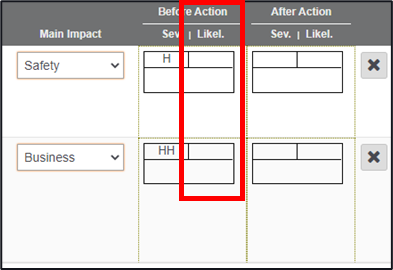 In the same way as selecting severity you can select the ‘likelihood’ in the same method.