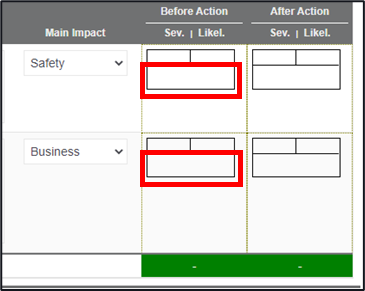 These use the ‘main impact’ areas to provide and display the correct areas of the risk matrix.
