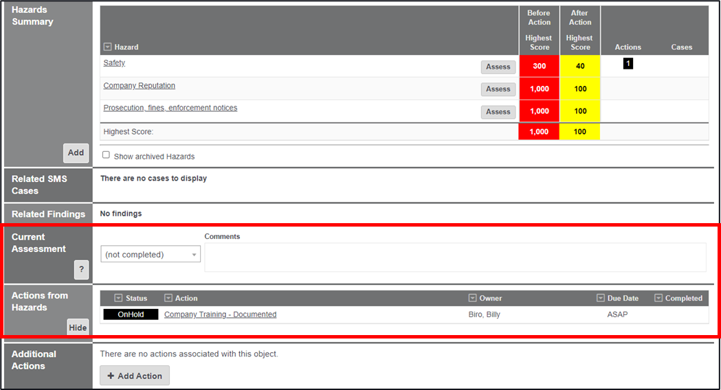 All OnHold actions are automatically released upon the risk assessment being signed-off