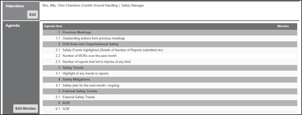 Agenda Items and Minutes of Meetings – The agenda item and the ability to add in minutes / view minutes from previous meetings