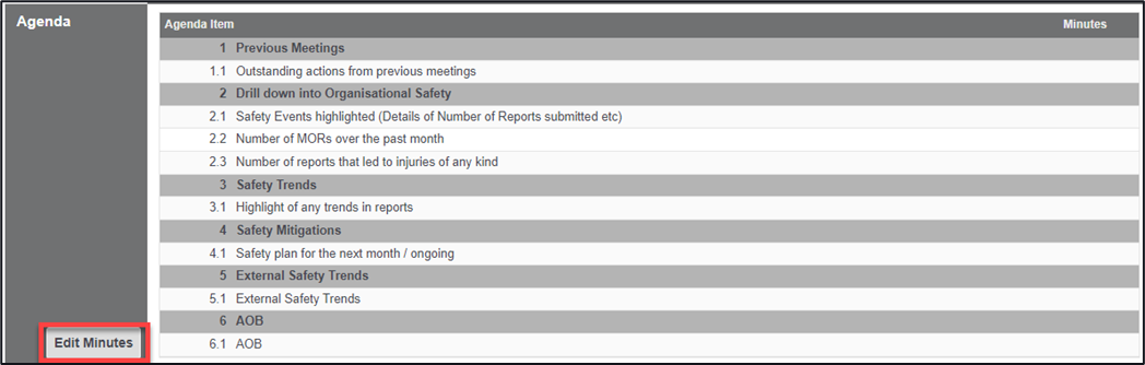 1. Click on the ‘Edit Minutes’ button within the agenda section