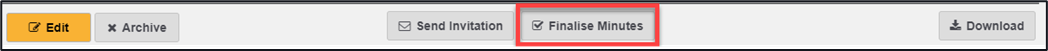 Upon clicking the finalise minutes button, you are provided with further options, including a download button (with available options)