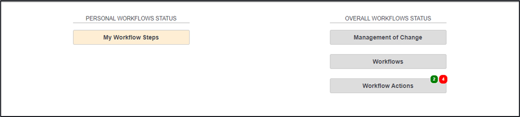 Clicking on the Management of Change button from the Workflows landing page directs you to a summary of the management of change area.