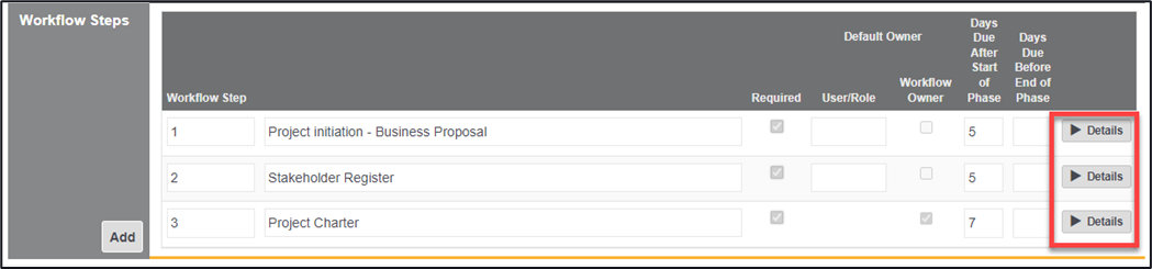 1. Click on the ‘Add’ button within the Workflow Steps area