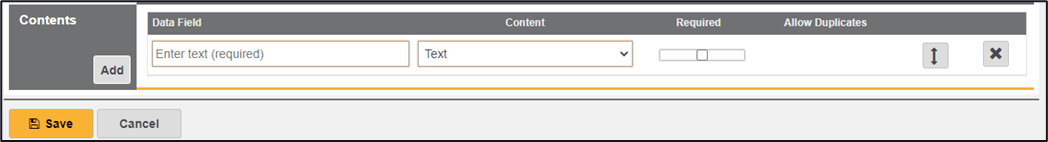 10. Click on the ‘Add’ button within the Content area, an additional area is enabled.