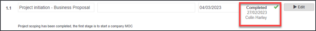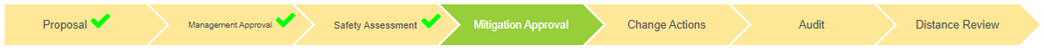 As sign-off is completed and you move through the phases of the MOC you can visually see at what phase you have completed from the chevrons at the top of the page.