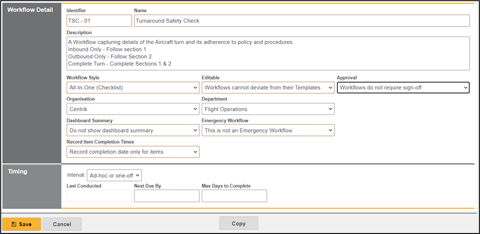 Next Due – If a timed interval has been selected the next due date for this workflow