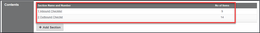 Navigating back to the workflow definition just created you are able to see the Section Name and number together with the number f items within each section.