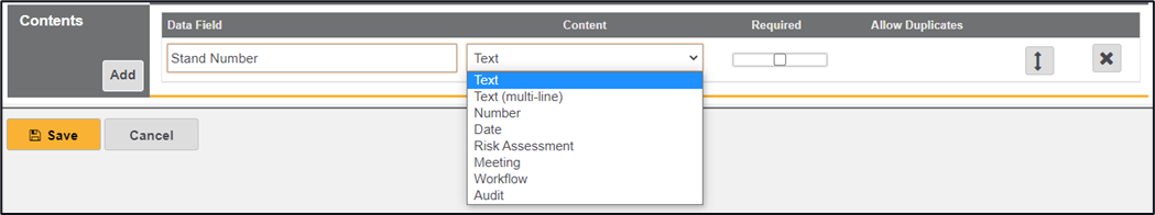 Upon saving an additional area is enabled titled Contents, this is where you can add in your checklist items.