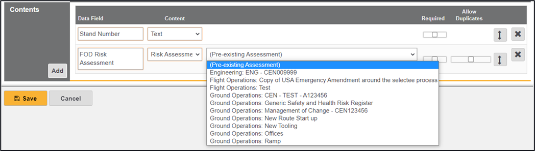 Risk Assessment – Add in a Risk Assessment