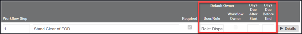 There is also the ability to capture due dates after the start of the workflow, or the number of days before the end of the workflow. Dates are calculated based on the workflow start date.