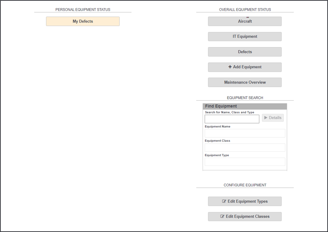 Personal Equipment Status – An area that displays my equipment defects, those that have been raised, allocated, or deferred to me.