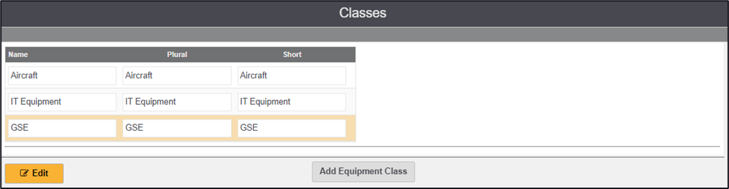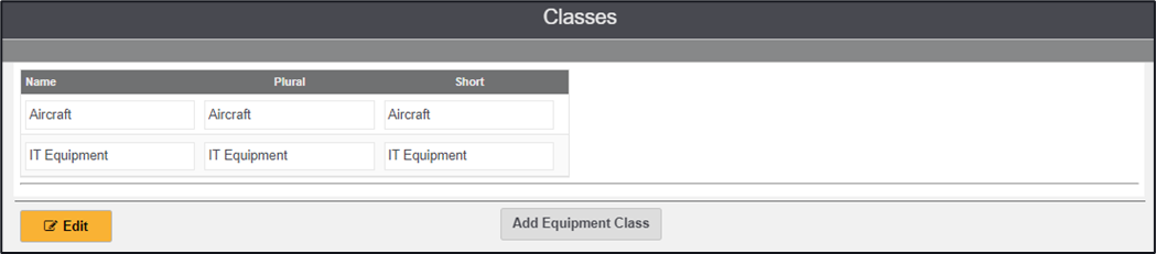 Equipment Class - Editing an existing Equipment Class