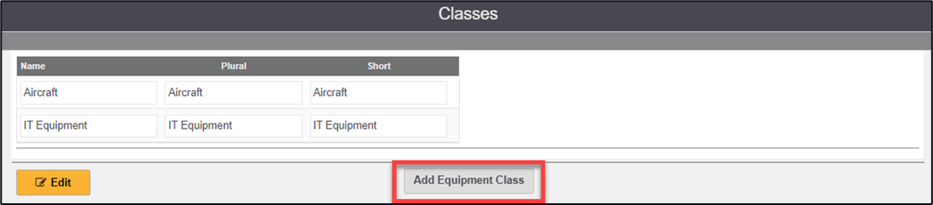 2. Click on the ‘Edit Equipment Classes’ button