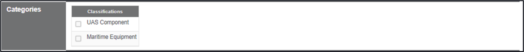 Categories – This area is designated for UAS, or Maritime clients, if your organisation is not one of these types of organisations you can disregard this area.