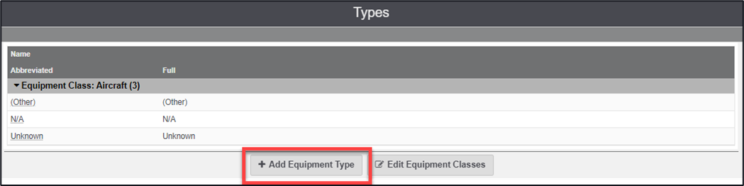 1. Click on the ‘Edit Equipment Types’ button