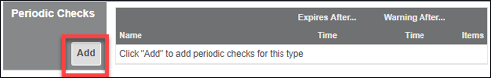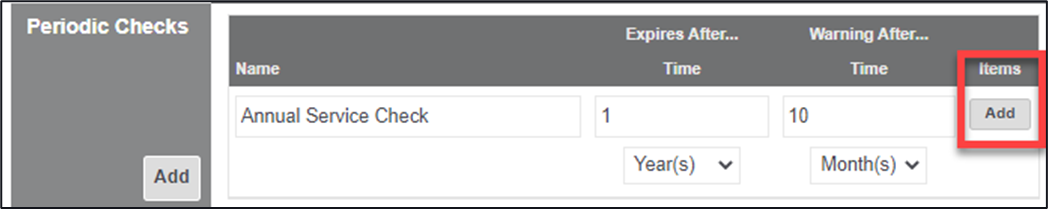 1. Within the Periodic Checks section, click on the ‘Add’ button