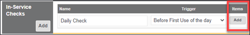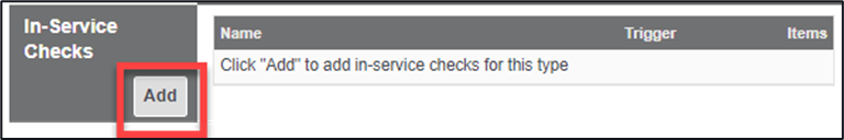 1. Within the In-Service Checks area, click on the ‘Add’ button
