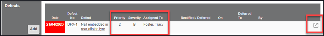 1. Clicking the ‘Add’ button within the Open Defects section will open a new defect page