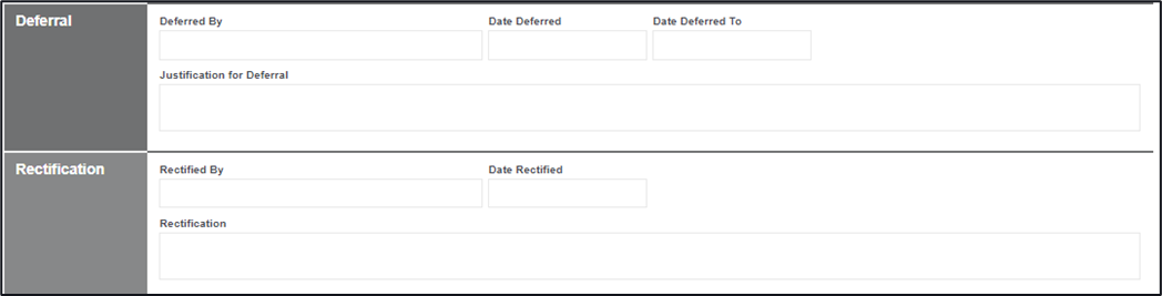 The two areas of focus are the Deferral area and the Rectification sections