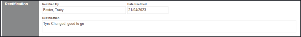 2. In the available Rectification box, enter in the details of who is rectifying this defect, the date of rectification, and Rectification details.