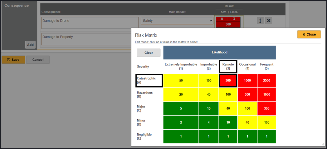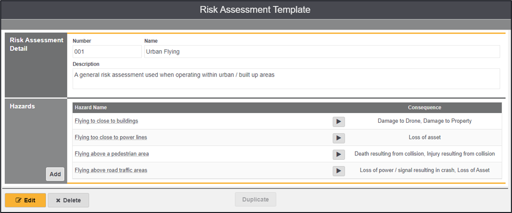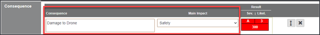 Once the Hazards have been inputted there needs to be consequences added to each hazard (this can be one or more)