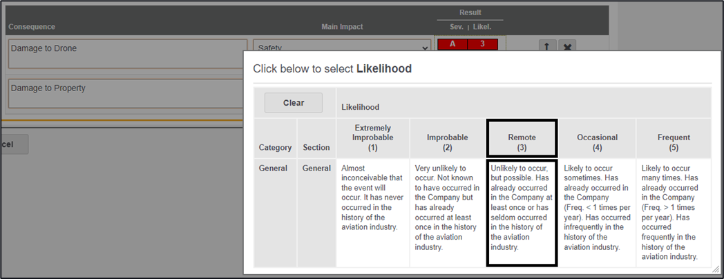Selecting Likel will display the Likelihood areas and calibration for the risk matrix