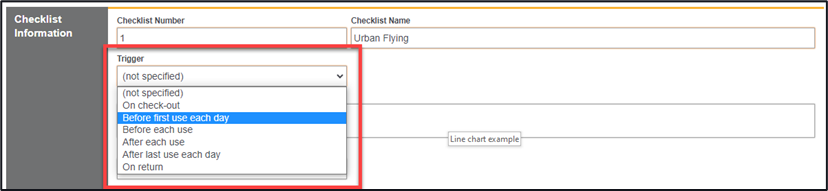4. Select the Trigger from the available dropdown (when this checklist will become triggered/active)