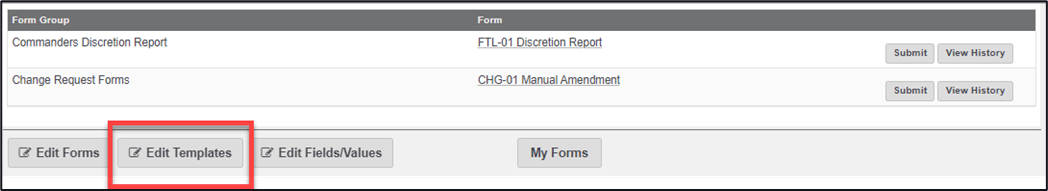1. From the Forms main landing page, click on the ‘Edit Templates’ button