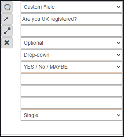 8. Enter in the details for this field, for example if it is a custom field, the text title of the field, whether the field is mandatory or optional, the type of field required and if you can use it only once or multiple times.