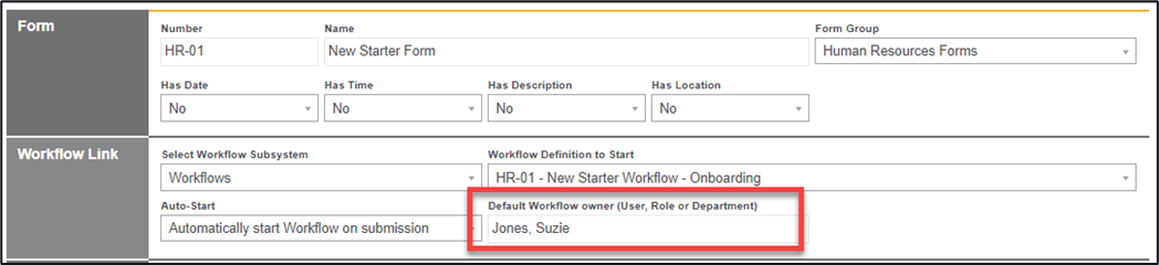 5. Input a workflow owner