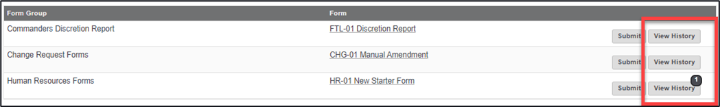When a form is submitted, the information it contains is collated and stored within the History area of each form.