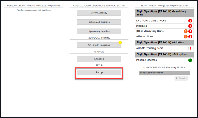 1. From the training module landing page, click on the ‘Setup’ button